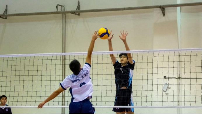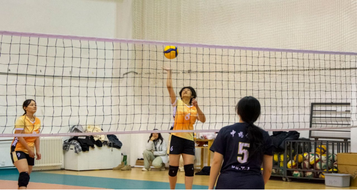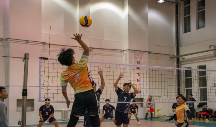 一声哨响,药学院队9号主攻手一记标志性的大力扣杀,排球如炮弹般砸向对方场地,撕开对手防线。赛中双方网前争夺白热化。生命科学与生物制药学院队1号球员精准拦网,挡住对方快攻,12号球员凭借顽强的防守反击,极限救球反制对手。最终,生命科学与生物制药学院代表队凭借更稳定的发挥锁定胜局。