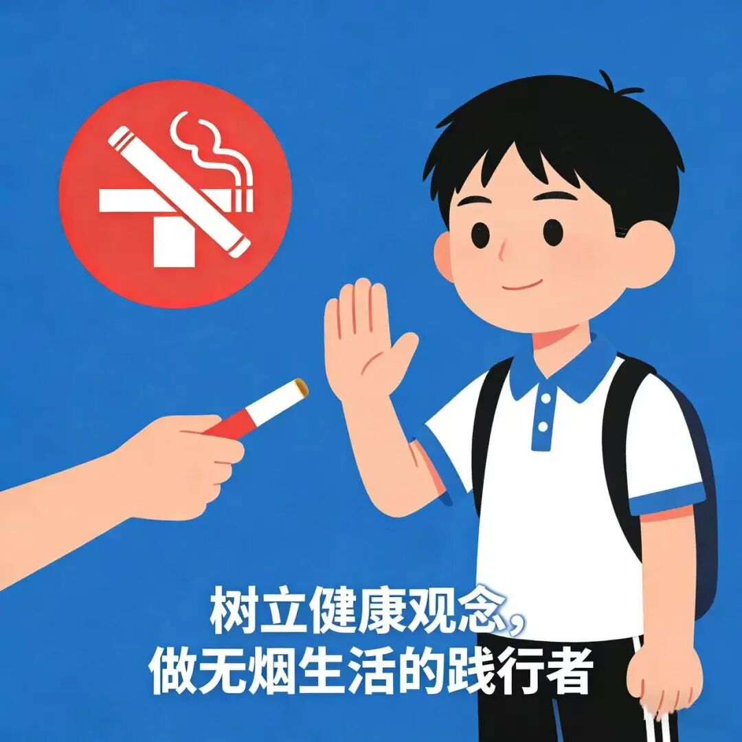 充分认识吸烟及二手烟对身心健康的严重危害,主动学习健康知识,提升健康素养。从自身做起,自觉拒绝烟草,养成文明、健康的生活习惯,让青春的朝气远离烟草的侵扰,以强健的体魄和饱满的精神投入学习与生活。