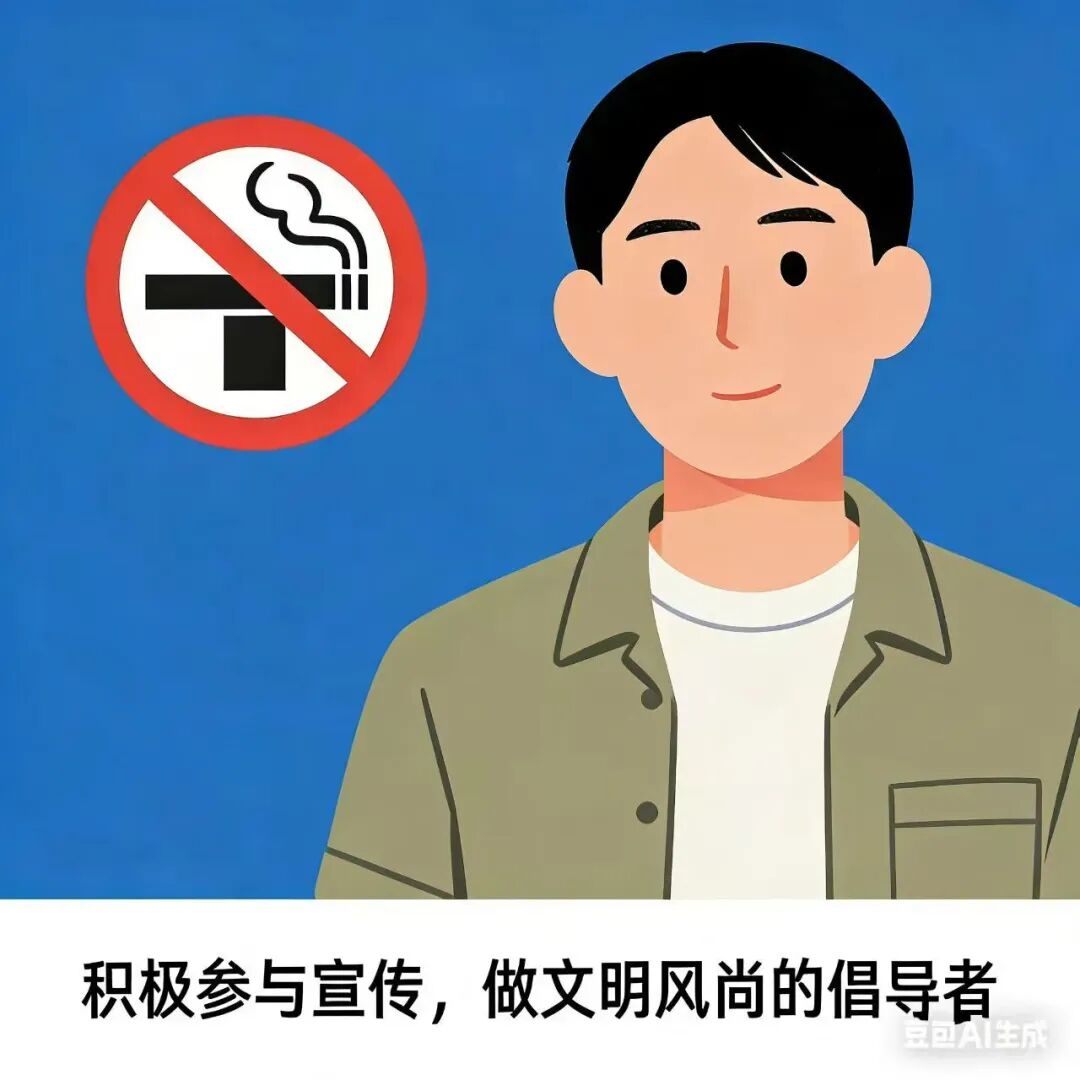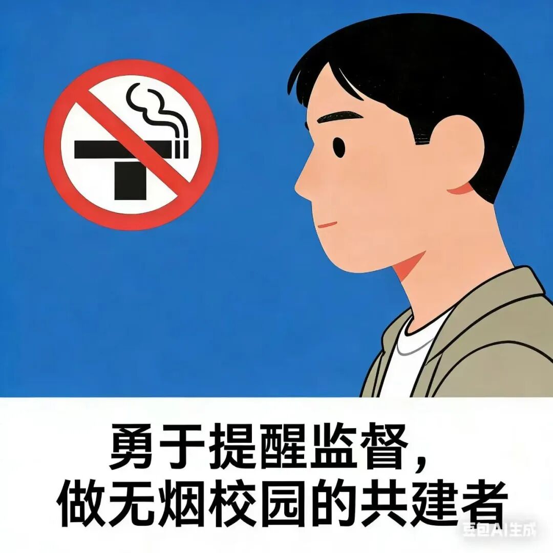 增强责任意识与公德心,遇到身边同学在禁烟区域吸烟或准备吸烟时,给予友好的提醒与劝诫。积极配合“校园控烟监督员”的工作,形成互相提醒、共同监督的良好氛围,让不吸烟成为校园常态,让文明修养在行动中提升。
