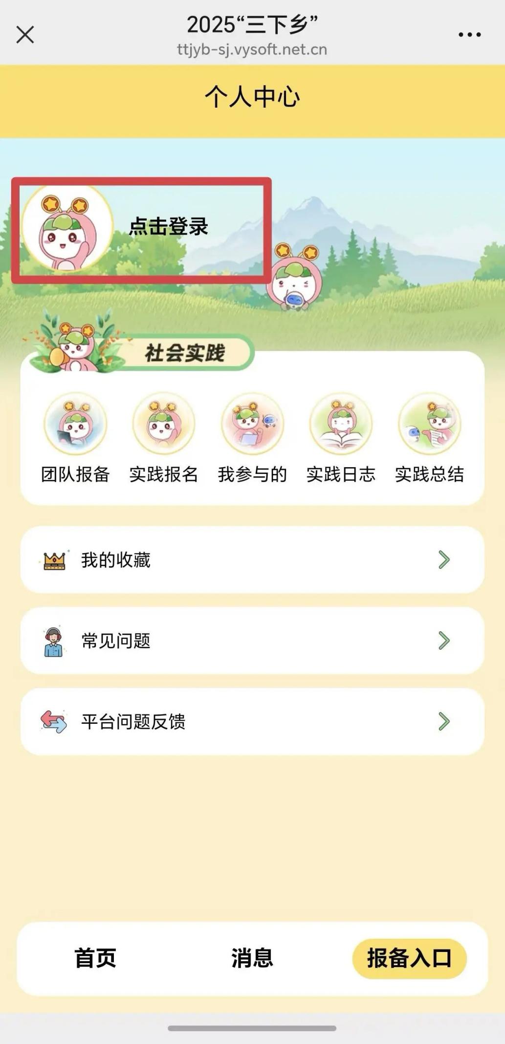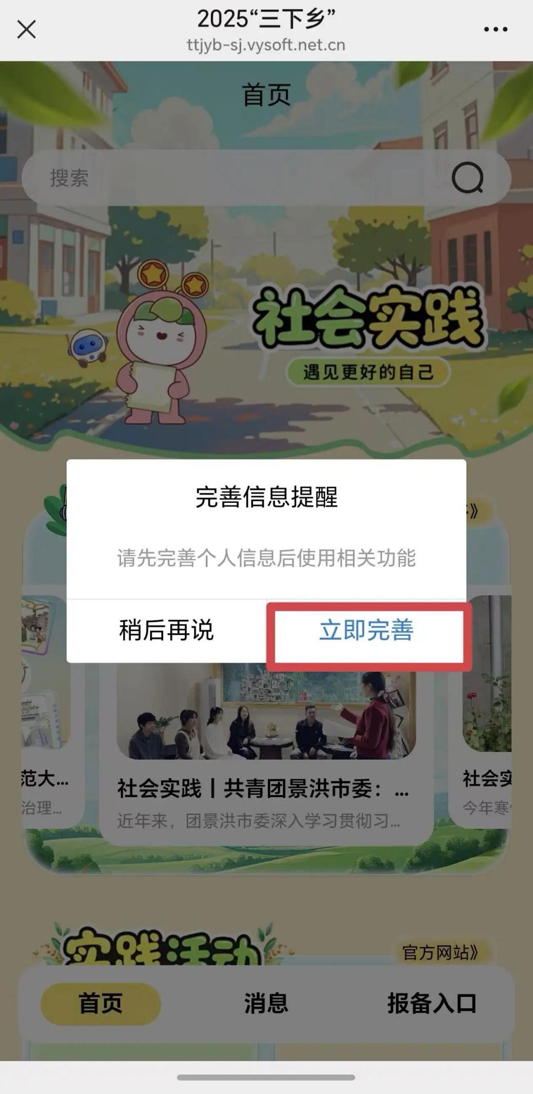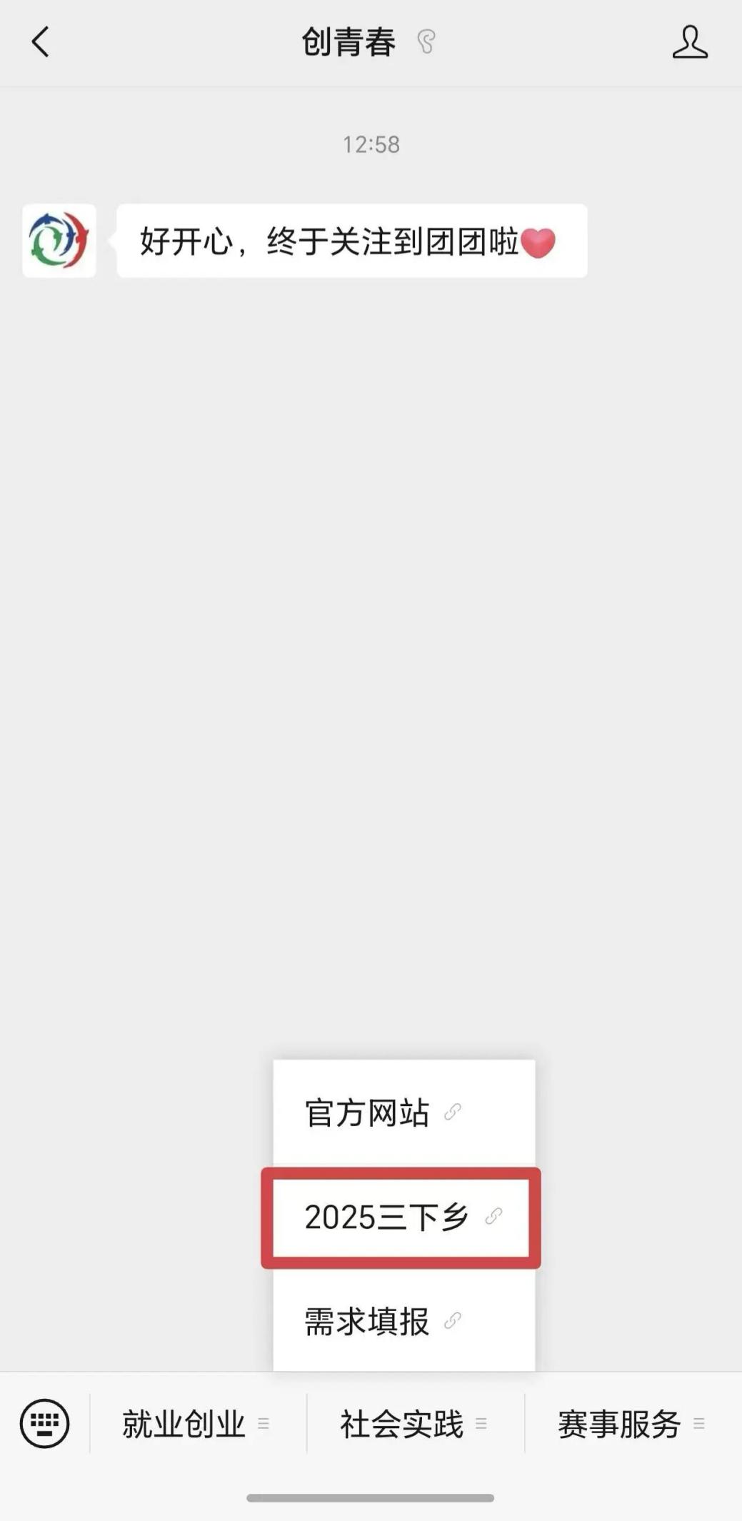 2. 进入“创青春”公众号,选择“社会实践”——“2025三下乡”。